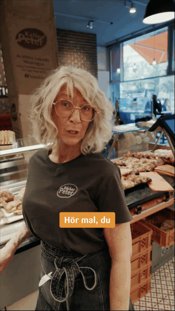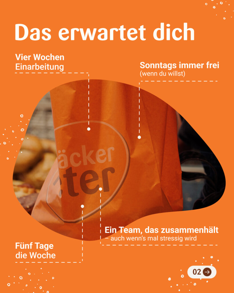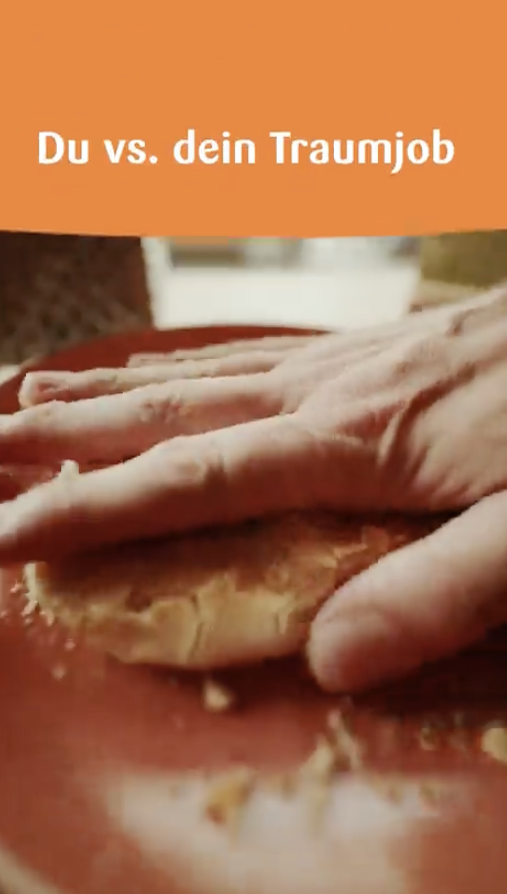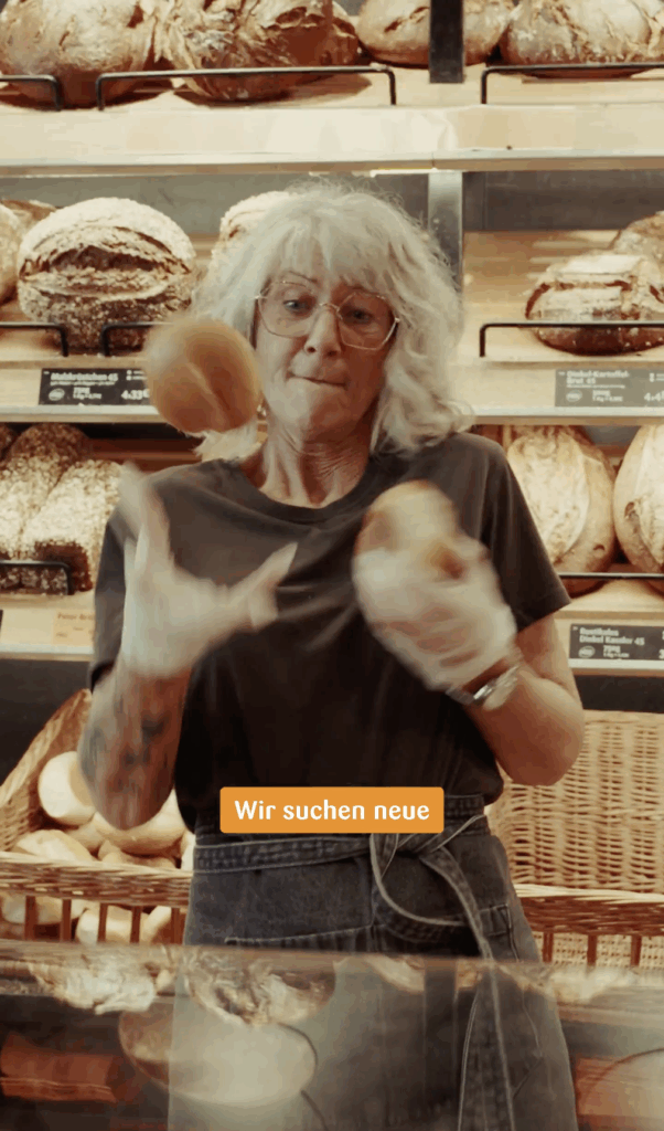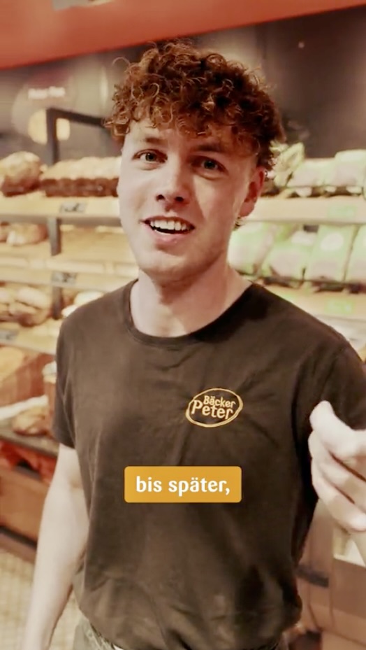 - „Authentische Kollegin “: kurze, dynamische Clips bei der Arbeit mit Authenizitätsfaktor. Die Bäckereifachverkäuferin redet wie im Alltag, nicht wie im Bewerbungsgespräch und nimmt Anwärter:innen direkt mit behind-the-scenes – hinter die Ladentheke.